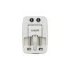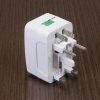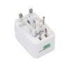Adaptador universal em plástico resistente, disponível na cor branca. Oferece flexibilidade com três tipos de plugues retráteis: EUROPE, UK/SP e USA/JAPAN/AUST/THAI. O uso é intuitivo: para cada tipo de plugue, há instruções claras sobre como estender e recolher. Além disso, possui uma parte central onde você pode conectar seu dispositivo e usar as outras tomadas para conectá-lo à energia. Um indicador de luz vermelha confirma quando o adaptador está em funcionamento, garantindo praticidade e segurança durante o uso.