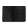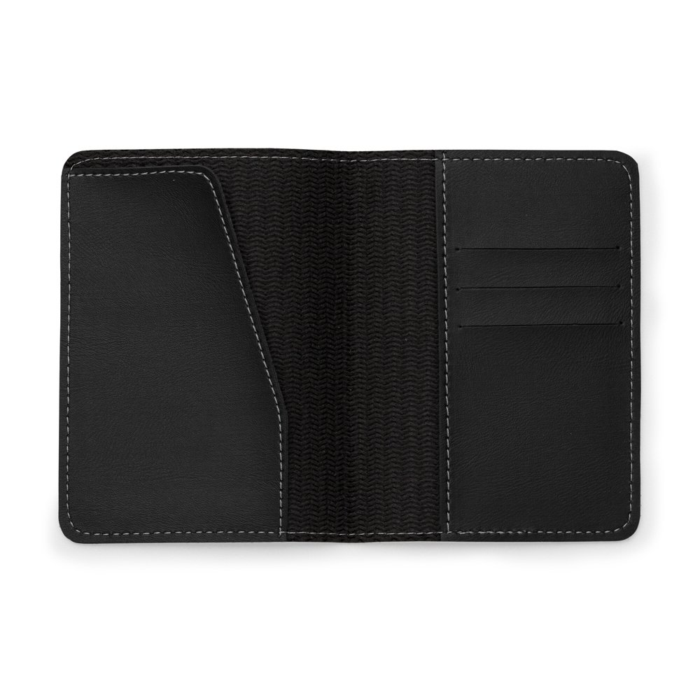 Porta passaporte Bidins em couro sintético, possui três compartimentos na lateral para cartões.