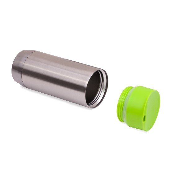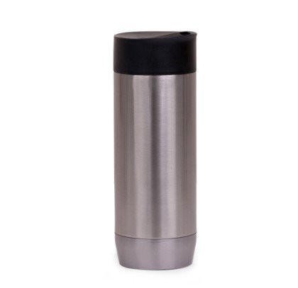 Copo Inox 420ml com tampa rosqueável e parede dupla.