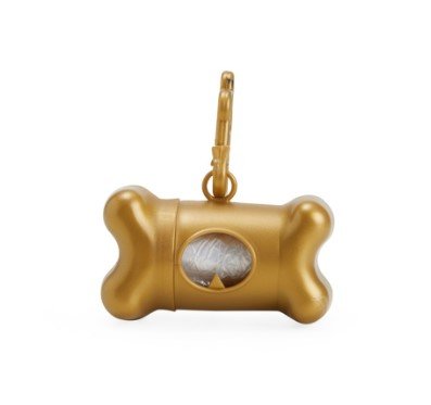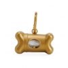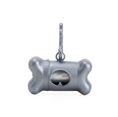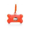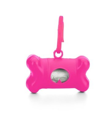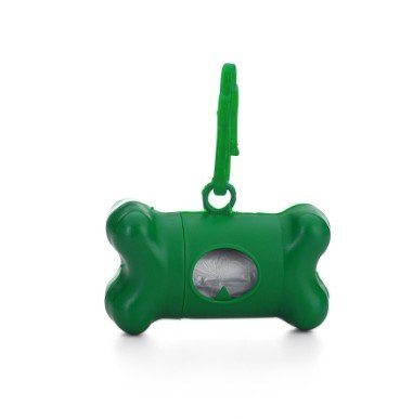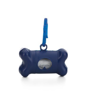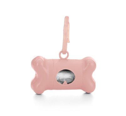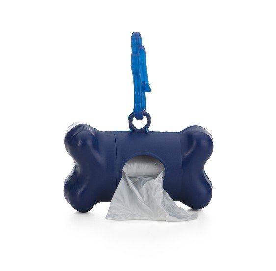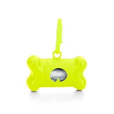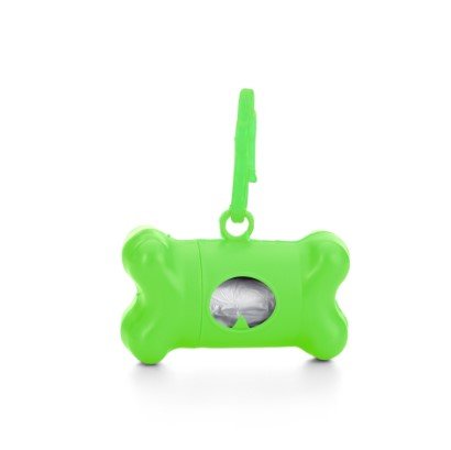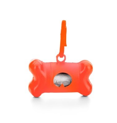 Kit saquinho coletor em formato de osso. Produzido em material plástico, o kit possui abertura lateral para encaixe do rolo e parte frontal vazada com dente plástico, permitindo puxar e destacar os saquinhos. Acompanha mosquetão e rolo de saquinhos.