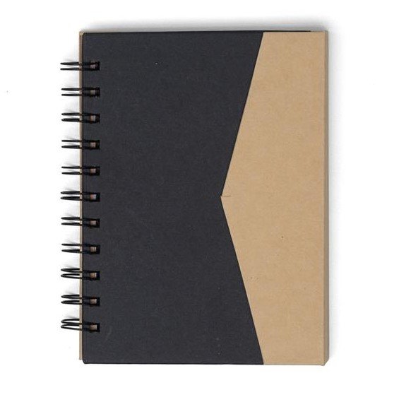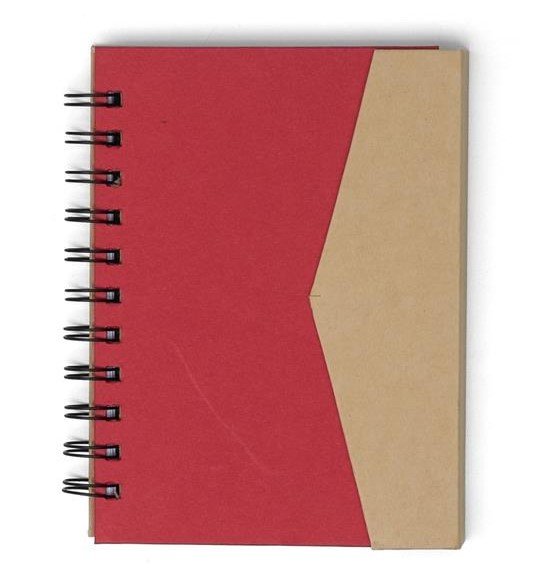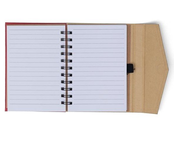 Bloco de Anotações Ecológico com autoadesivos e suporte para caneta. Bloco de capa colorida com abertura lateral imantada, primeira folha com cinco blocos autoadesivos coloridos com aproximadamente 25 folhas e aproximadamente 68 folhas brancas pautadas. Ultima página kraft conta com suporte para caneta em nylon(não acompanha caneta).
