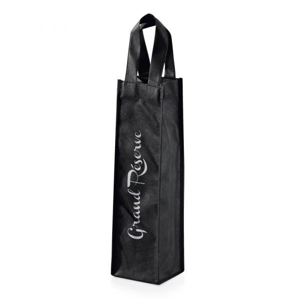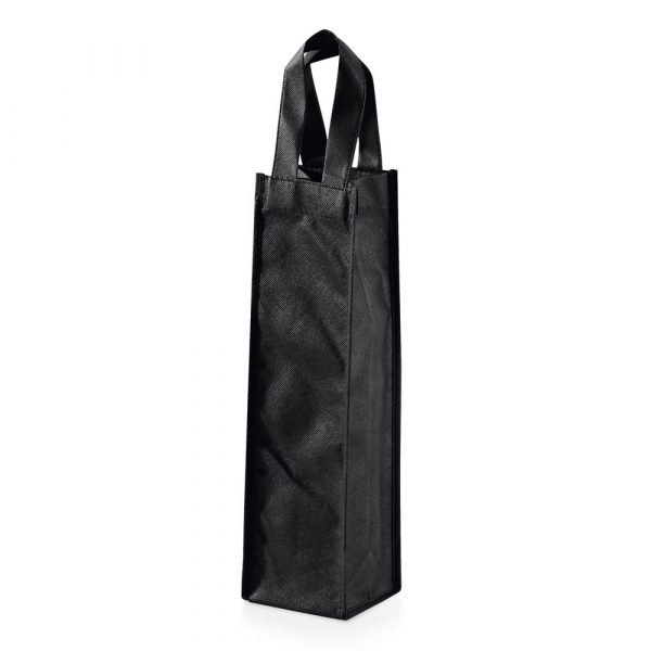 Sacola para 1 garrafa em non-woven (80 g/m²) com alças. 100 x 330 x 100 mm.