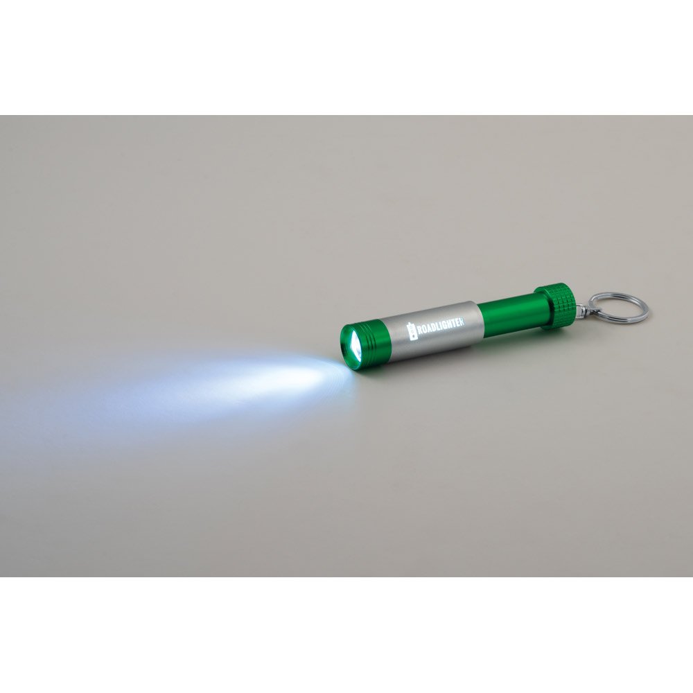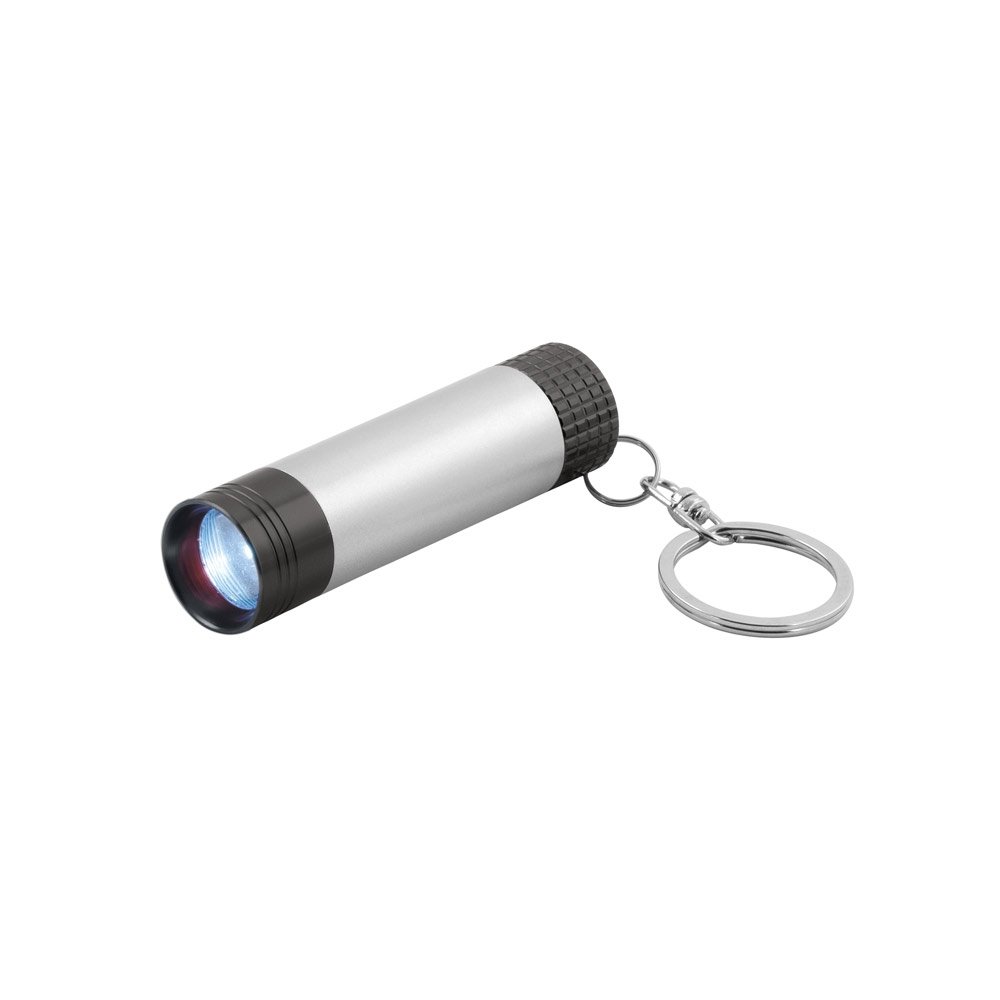 Chaveiro com lanterna em alumínio e LED interior. Incluso 4 pilhas LR44.