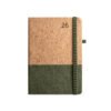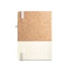 Agenda 2026 A5 em cortiça e linho com suporte para caneta, marcador em fita, fecho elástico na cor, plano diário e bolsa non-woven.