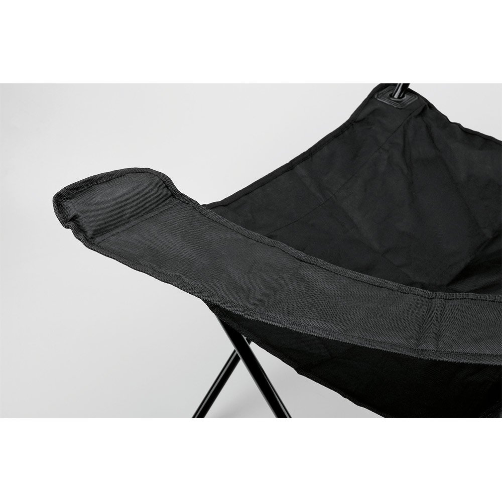 Cadeira dobrável em 600D, com suporte em rede para squeeze. Construção em metal que suporta até 100 kg. Fornecida em bolsa com alça.