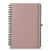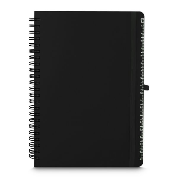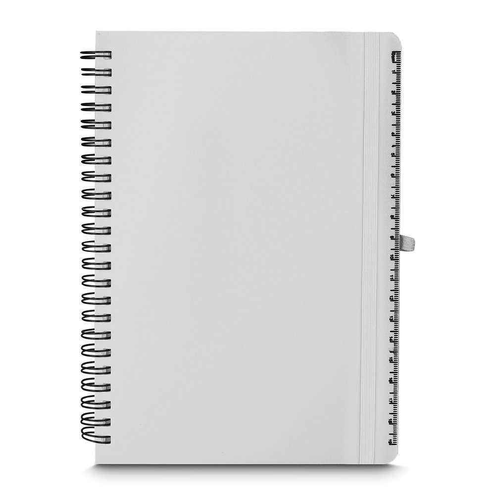 Caderno de anotações com capa em PP reciclável, suporte para caneta e miolo com 70 folhas pautadas brancas. Prático, resistente e ideal para o dia a dia.