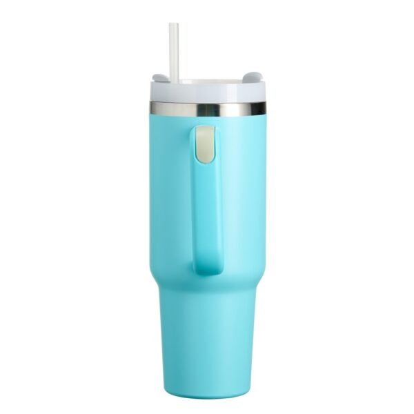 Caneca térmica de 1.2 litros, feita em inox com parede dupla, contém tampa acrílica rosqueável com acesso para canudo e pegador plástico com aderência emborrachada. Acompanha canudo plástico.