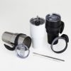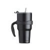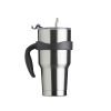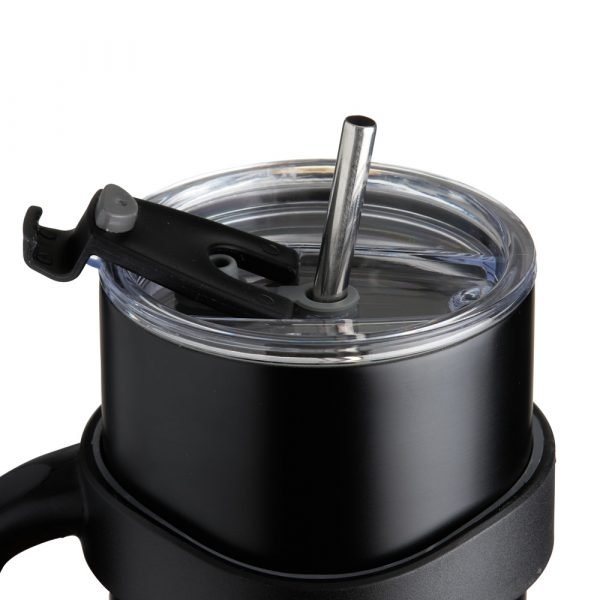 Caneca térmica de inox de 800ml, contém duas tampas, sendo uma acrílica com bocal, trava de segurança, e uma pequena tampa acoplada emborrachada para dissipação da temperatura, e a segunda tampa acrílica, contém compartimento que ao deslizar acessará ao bocal. Acompanha canudo de inox e escovinha de limpeza.
