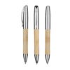 Caneta esferográfica com corpo em bambu e detalhes em metal. Sustentável, elegante e funcional, ideal para uso diário ou como brinde corporativo ecológico.