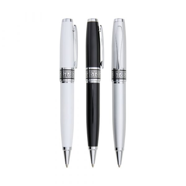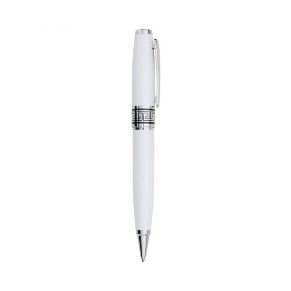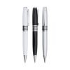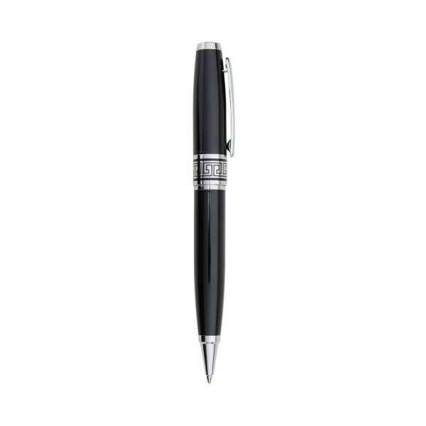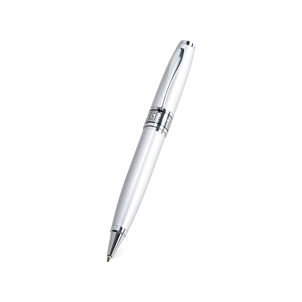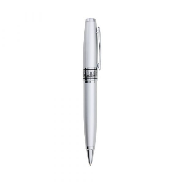 Caneta esferográfica metálica. Aciona por rotação e carga esferográfica azul de 1.0mm, proporcionando escrita suave, durabilidade e design elegante.