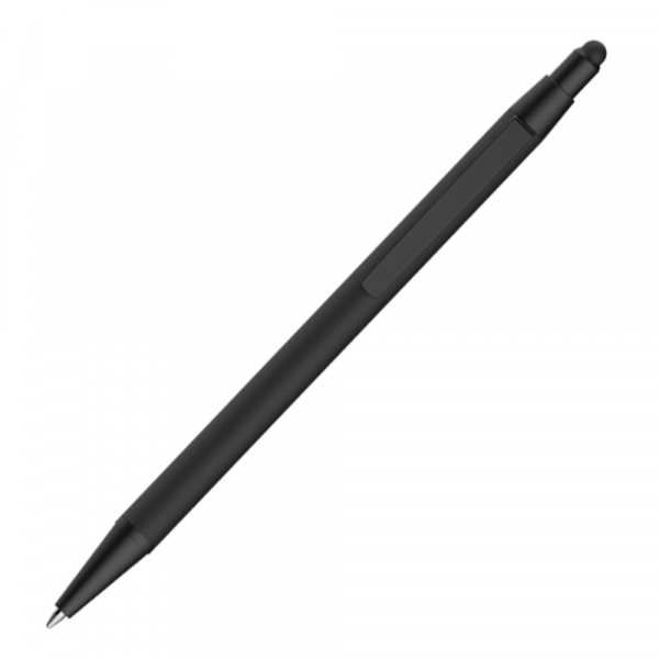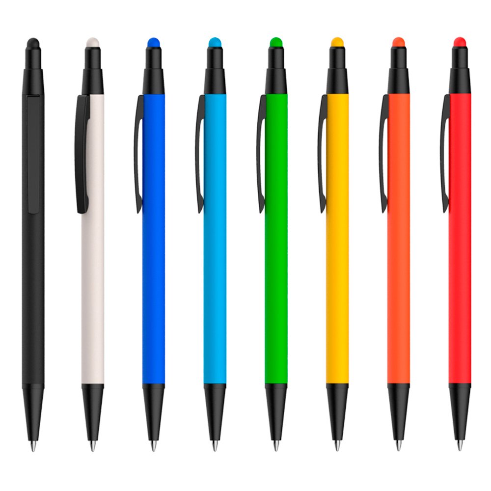Caneta metálica com touch screen e detalhe emborrachado. Perfeita para uma escrita suave em azul, combinando funcionalidade e estilo.