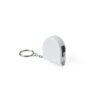 Chaveiro trena plástica com fita de aço de 2m, medidas em pés e polegadas, trava de segurança e argola metálica. Prático, versátil e funcional no dia a dia.