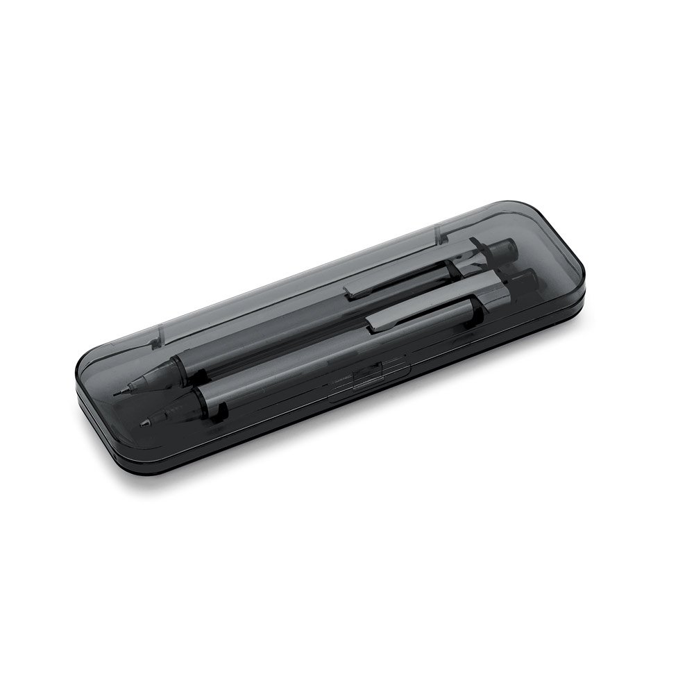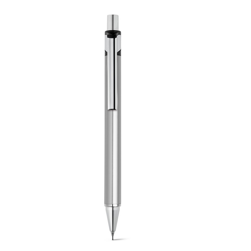 Conjunto de esferográfica e lapiseira em alumínio. Esferográfica até 1,5 km de escrita.