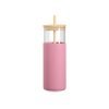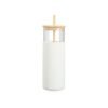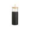 Copo de vidro de 500ml. Feito de vidro borossilicato, inclui canudo e tampa de bambu com abertura para canudo e uma luva de silicone para melhor aderência.