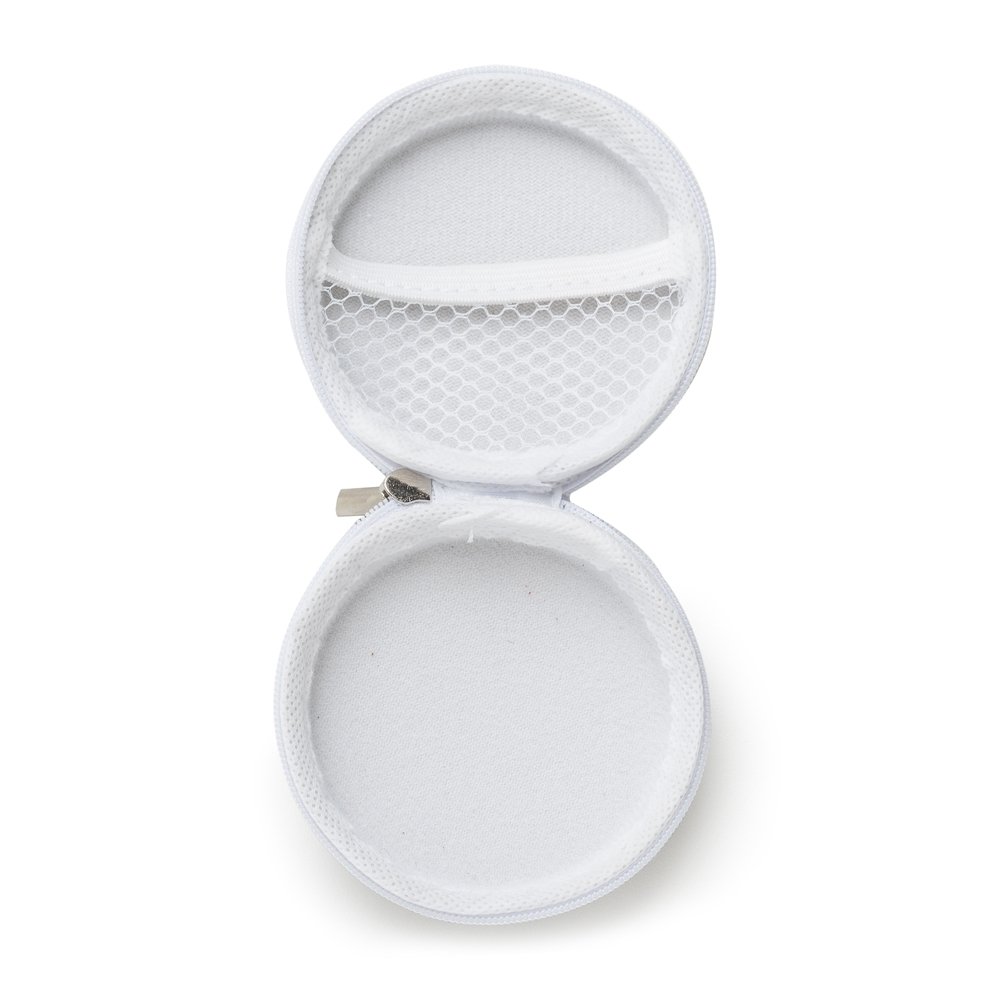 Estojo emborrachado redondo, parte interna com redinha, costurado com acabamento em zíper. Ideal para guardar fones, carregadores, cabos e etc.
