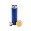Garrafa térmica de 450ml, em inox com parede dupla, ideal para manter a temperatura da bebida. Vem com infusor e tampa rosqueável com detalhe em madeira.