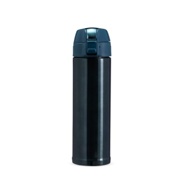 Garrafa térmica de 480ml. Com tampa de trava segura e anel de silicone antivazamento. Vedação interna na tampa mantém as bebidas na temperatura ideal por muito mais tempo, seja quente ou fria.