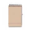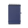 Mini caderno em PP reciclável com suporte para caneta. Contém 60 folhas pautadas brancas. Leve, prático e sustentável, ideal para uso diário ou brindes.