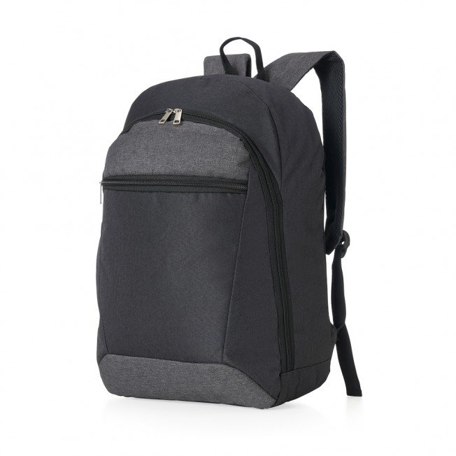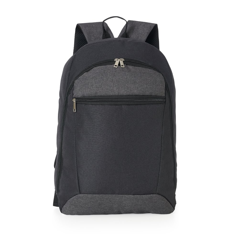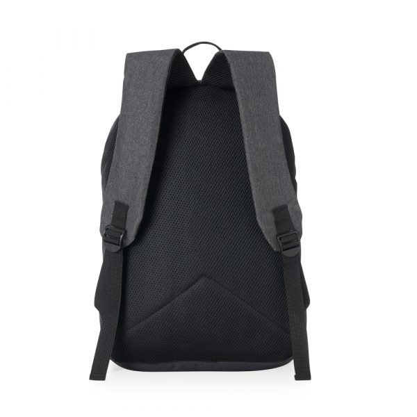 Mochila de poliéster 24 litros com dois compartimentos, sendo o principal com bolso para notebook 15,6”. Área costada com revestimento espumado.