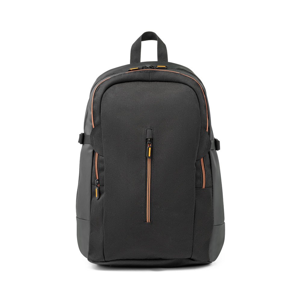 Mochila para Notebook combina 900D e couro sintético, oferecendo durabilidade e estilo. Seu compartimento posterior é almofadado para laptops até 15,6″. Dimensões: 330 x 450 x 160 mm.