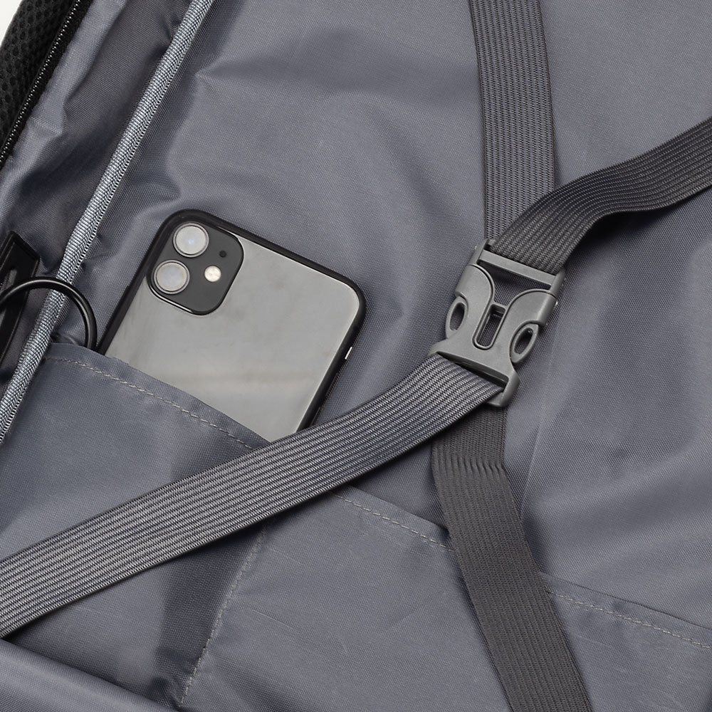 Mochila pasta para notebook em poliéster. Conta com alças acolchoadas, porta USB, engate para mala, bolsos frontais e para notebook de até 15,6″.