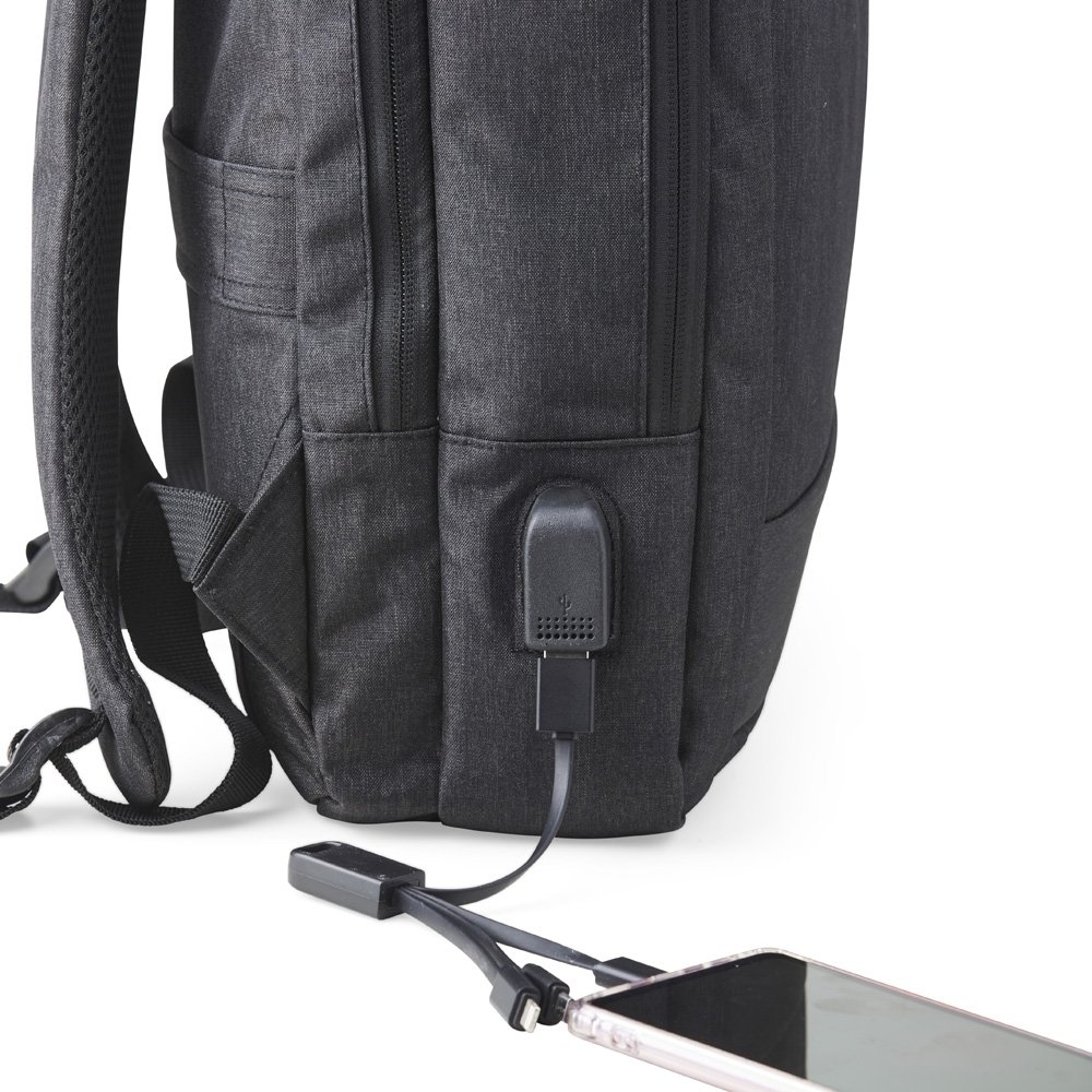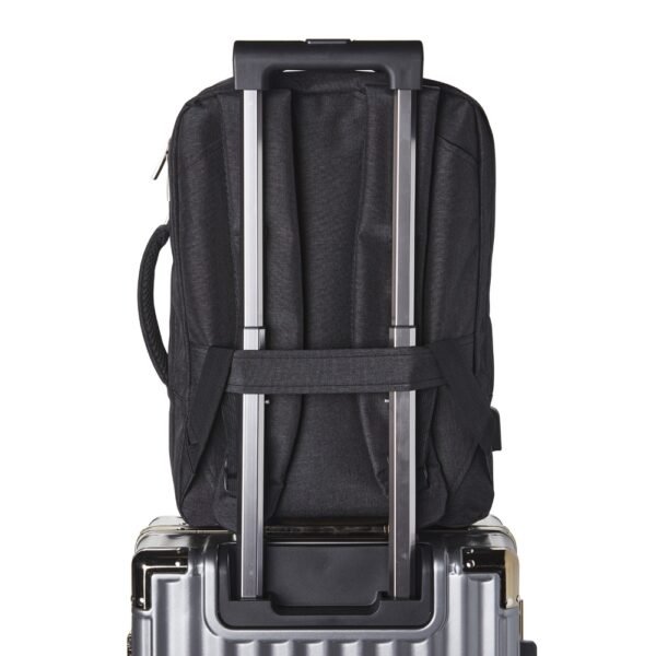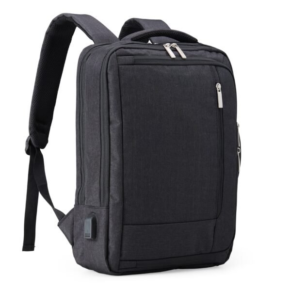 MOCHILA POLIÉSTER 19L com bolso para notebook 15,6″, USB, divisórias internas, alça de mão e suporte para mala. ideal para uso diário
