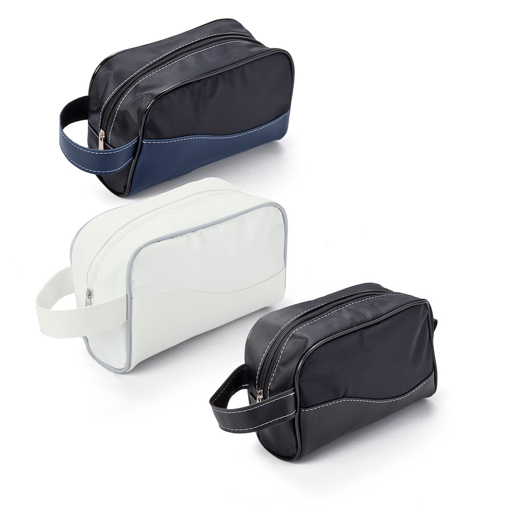Nécessaire em PU com forro sintético Bidim e alça lateral. Possui gravação frontal em serigrafia ou plaquinha. Elegante, prática e ideal para brindes.