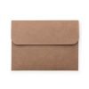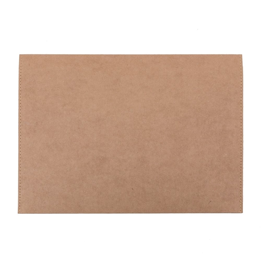 Pasta envelope ecológica, possui abertura superior fixada por um botão imãtizado. Detalhes costurados nas laterais, material em kraft.
