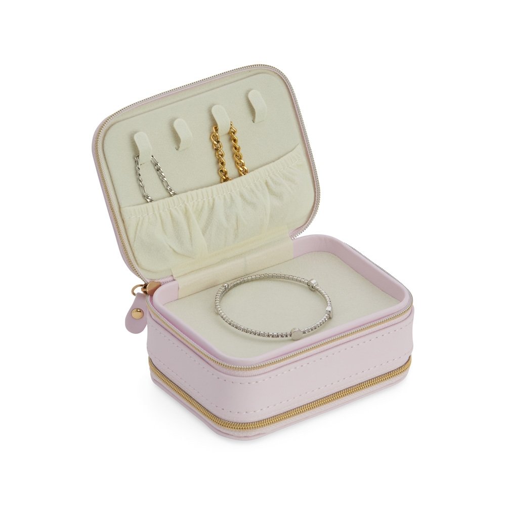 Porta-joias de couro sintético com dois compartimentos de revestimento aveludado. Possui compartimento para anéis, brincos, pulseiras e colares.