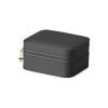 Porta-joias de couro sintético com revestimento aveludado. Possui compartimentos internos para anéis, brincos, pulseiras e colares.