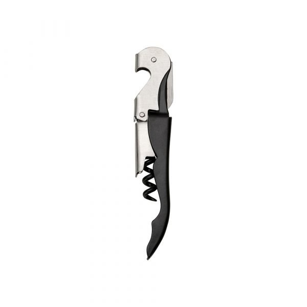 Saca rolhas metálico de 2 estágios com acabamento fosco. Contém abridor de garrafa, lâmina de corte e saca rolhas. Tamanho: 12,3 x 2,2cm.
