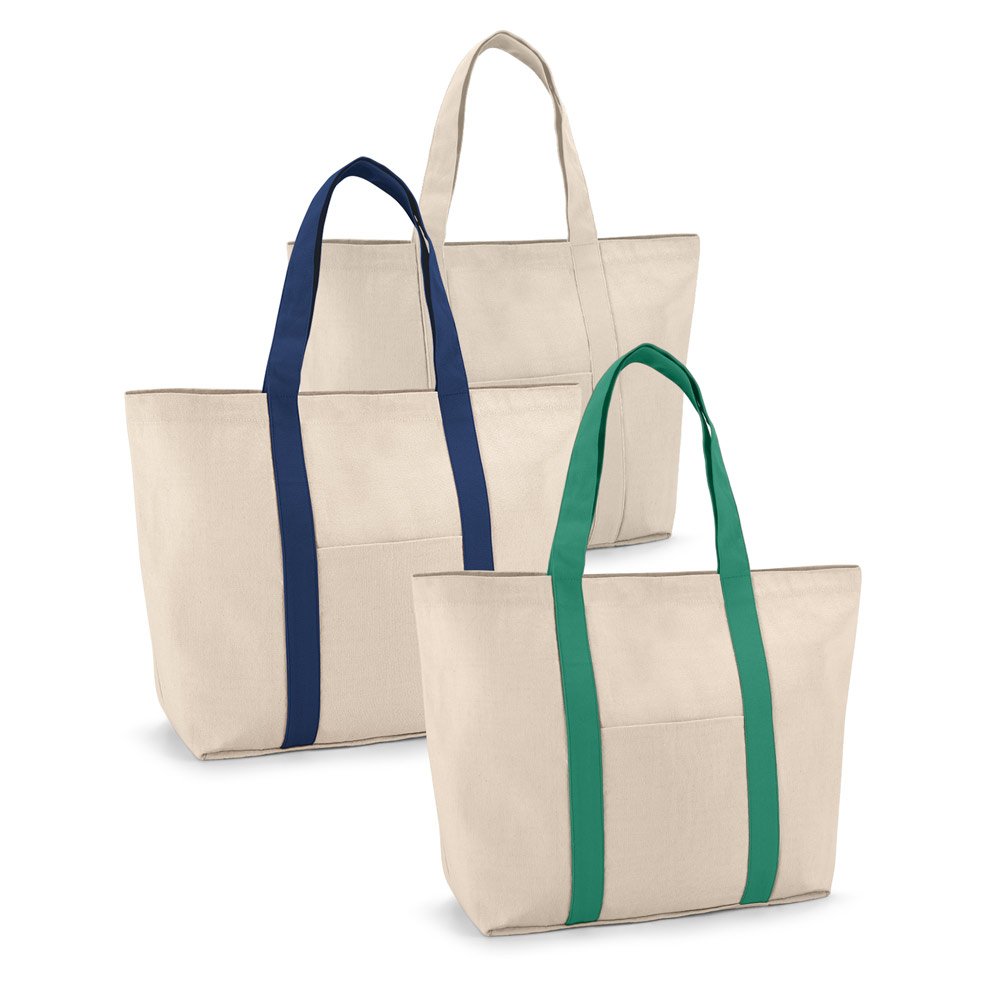 Sacola. 100% algodão canvas: 280 g/m². Bolso bolso frontal e bolso interior com zíper. Com fecho magnético e alças de 60 cm.